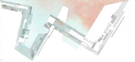 The project is designed to be located on the eastern coastline of Bosphorus, a peculiar stream in Istanbul which is the border between Asia and Europe and divides the city to two radically different sides. The plan partially follows the form of the eastern shore of this border. Moreover, the lot was chosen in a highly urban part of Istanbul in order to challenge the necessity of escaping from the city for gaining psychological restoration. It is intentionally positioned between multiple transportation hubs: the currently inactive port of Haydarpaşa, a ferry terminal, a bus terminal, and a parking lot. The project works as a filter, creating an experience of a walk on the coastline of Bosphorus for the people who are running between these transportation hubs. It invites the passer-by to slow down, stay, observe their environment, and play with it.
