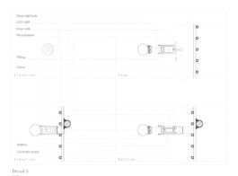 The pieces come to the lot prefabricated. They are hot- dip galvanized and painted with Powder Coating grey paint. The average prefabricated element’s size is approximately 1.3 x 1.3 meters. Since the construction is on the shoreline, at first, an impermanent dam should be constructed in order to dry the location temporarily. The next step is to install a mould and the first layer of the walls. Afterwards, mesh floorings are added piece by piece, then concrete is poured inside the mould for the foundation. When the concrete is dried, the mould can be removed, and other pieces of walls can be stacked on top. The pieces are connected vertically through male-female connections and they are fixed with screw and bolts on site. The upper level floorings are welded to the vertical elements on site and ladders are easily added. When the construction is finished the temporary dam is removed to let the water come back to the site. Special lamps have been designed for the building. They work with solar cells getting the energy at daytime and they can release enough light for approximately eight hours at night. Moreover, with a clamp they can be fixed to the columns of the small mesh and resting on the beams.