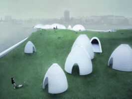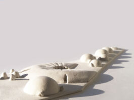 The problem of Superadobe construction is that the dome cannot be larger than a certain size. In order to achieve larger spaces—as it is needed in a museum and was asked in the design brief—the project proposes five new methods of construction with super adobe in combination with fiberglass-dome-ceilings.